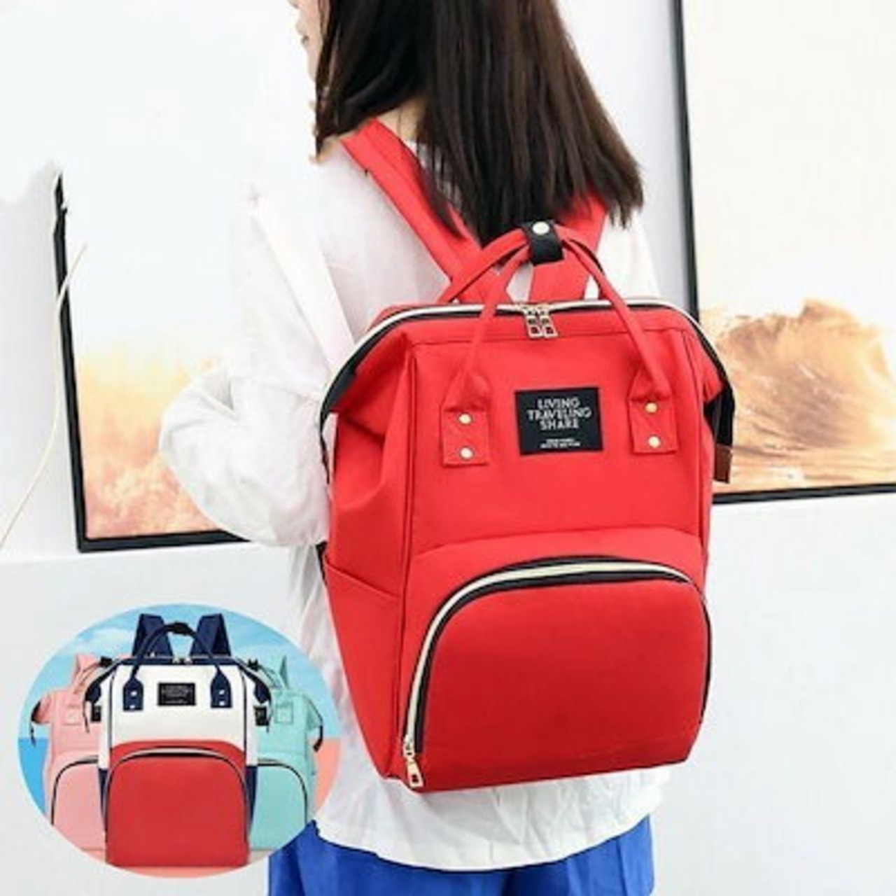 品質いいな新品 リュックサック デイパック バックパック マザーバッグ レディース 女性用 大容量 がま口風 ポケット付き カラバリ豊富 かわいい おしゃれ お出かけ
