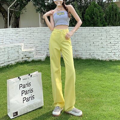8COLORS 2024春夏 ハイウエスト おしゃれ 薄手 デニムパンツ ゆったり 大きめサイズ 着痩せ モップパンツ ワイドパンツスラックスパンツ 韓国ファッション スキニーパンツ 脚長効果! ひん