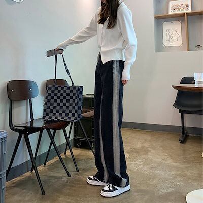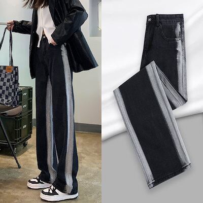 2024春夏 新作 日韓 ハイウエスト デニムパンツ モップパンツ ワイドパンツ グラデーション ズボン 気質 百掛けスラックスパンツ 韓国ファッション スキニーパンツ 脚長効果! ひんやりボトムス