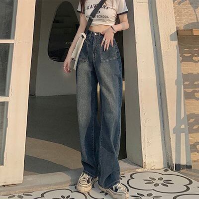 2024春夏 日韓 新作 ハイウエスト ゆったり デニムパンツ 百掛け 着痩せ 気質 モップパンツ ワイドパンツスラックスパンツ 韓国ファッション スキニーパンツ 脚長効果! ひんやりボトムス