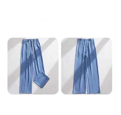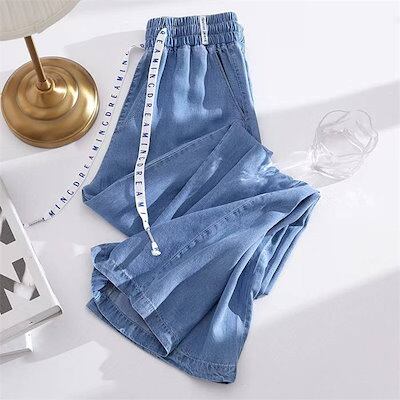 デニムパンツ レディース パンツ 春夏 イージーパンツ ワイド レディース ボトムス ウエストゴム デニム 接触冷感 涼感 春 夏 ひんやり UVカット 無地 薄手 涼しい ロング丈 ストレートパンツ