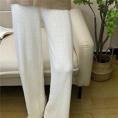 ニット ワイドパンツ レディース ニットパンツ 秋冬 イージーパンツ ロングパンツ 秋 冬 春 ロング ケーブル編み ストレートパンツ リラックスパンツ ニット ボトムス 体型カバー 美脚 通勤 オフ