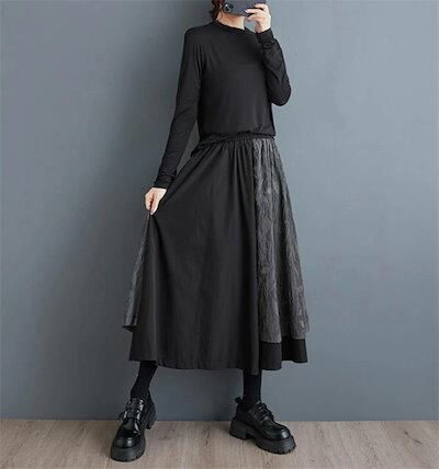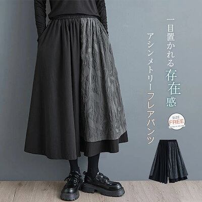 アシンメトリー ワイドパンツ レディース ワイド パンツ 秋 冬 春 配色 ガウチョパンツ フレアパンツ キュロットパンツ 大きいサイズ ゆったり ボトムス 秋冬 おしゃれ モード カジュアル ナチュ