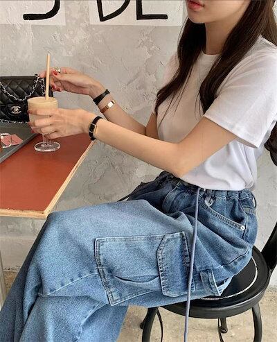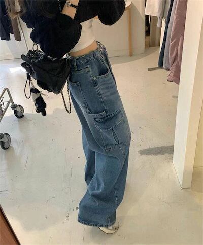 デニム カーゴパンツ レディース ゆったり ルーズ ズボン ストレート デニム ワイドパンツ 春 秋 冬 デニムパンツ レディース 秋冬 ゆる 大きいサイズ ハイウエスト 多ポケット ワークパンツ デ