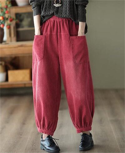 コーデュロイ パンツ レディース 秋冬 バルーンパンツ サーカスパンツ 秋 春 ボトムス 体型カバー サルエルパンツ コクーンパンツ 着痩せ 美脚 通勤 大人 シンプル カジュアル 黒 ブラック コー