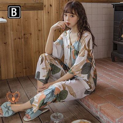 パジャマ ルームウェア レディース 春夏秋 綿 快適 七分袖 パジャマ ロングズボン vネック リボン ルームウェア 女性用 部屋着 寝巻き パジャマ 可愛い 韓国風