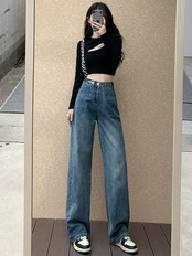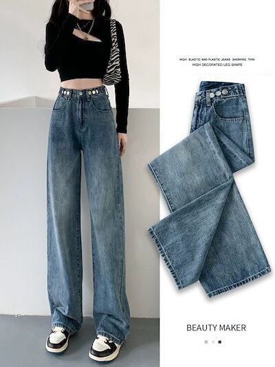 デニムパンツ 脚長効果!スキニーデニムパンツ 韓国ファッション デニムパンツ レディース 美脚 パンツ ワイドパンツ ロングパンツ春夏秋 クラシック ズボンワイドパンツ レディース デニムパンツメガ割