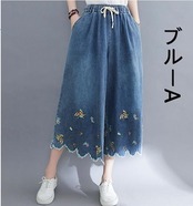 パンツ レディース ワイドパンツ スカーチョ デニム 刺? バギーパンツ ガウチョパンツ フレアパンツ イージーパンツ 体型カバー 春 夏 秋 ロング レディース ボトムス ワイド ゆったり カジュア