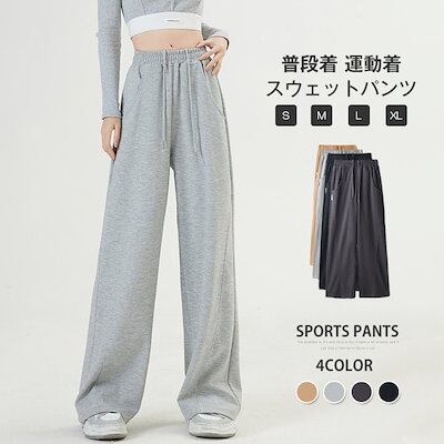 ワイドパンツ レディース パンツ ボトムス スウェットパンツ ロングパンツ ロング丈 春 秋 春秋 無地 ウエストゴム ポケット ストレート ゆったり カジュアル ルームウェア スポーツウェア 部屋