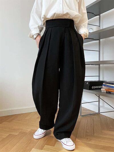 ワイドパンツ レディース タックパンツ ボトムス マキシ丈 秋 冬 春 オールシーズン無地 イージーパンツ ズボン アシンメトリー スラックス ハイウエスト マジックテープ 上品 きれいめ 落ち感 セ