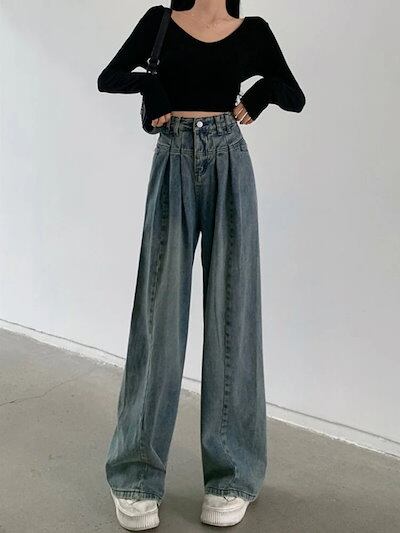 春新作 大きいサイズ レトロ ハイウエストジーンズ ゆったり デニムパンツ 体型カバー?デニム ワイドパンツ レディース 流行り 美脚 パンツ レディース設計感 大人のラフでおしゃれな着回しボトムス