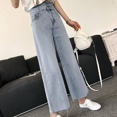 新追加 2025 新作春 脚長効果! デニムパンツ レディース ハイウエスト デニム ワイドパンツ 切りっぱなし デニム パンツ 春夏 薄手 デニム ストレート ジーパン レディース