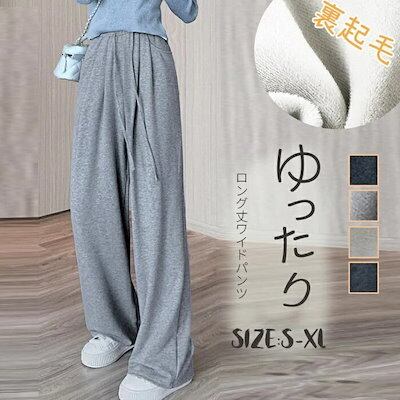 ワイドパンツ 裏起毛 レディース 秋冬 パンツ ロングパンツ 微起毛 ガウチョパンツ 体型カバー ロング丈パンツ ストレートパンツ ロング丈 イージーパンツ ウェストゴム きれいめ ゆったり カジュア