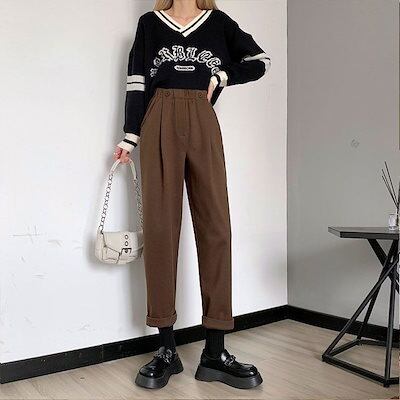 ハイウエスト パンツ 秋冬 カジュアルストレートパンツ 大きいサイズ 快適なワイドパンツ レディース ゆったり 垂感 体型カバー ファッション OL 通勤 ラシャスーツパンツ