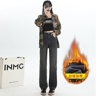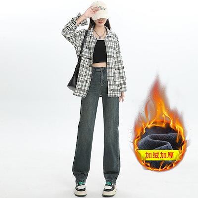 裏起毛パンツ ハイウエスト狭版ギャザーワイドパンツレディース冬2024新作スリムレトロストレートパンツ