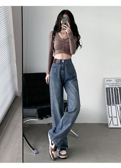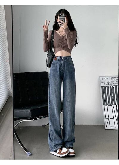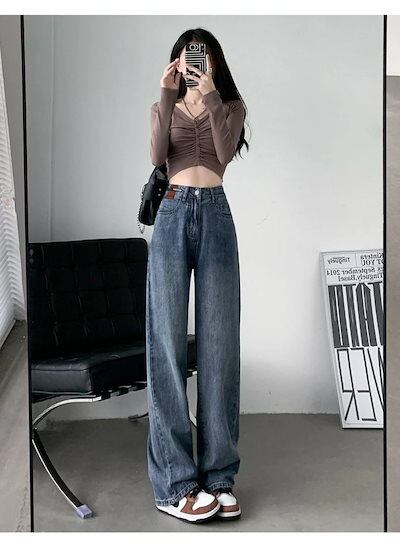 春服 レディース 高級感 スリム 修身 ハイウエストデニム ストレートパンツ レディース 着痩 ズボン レディース