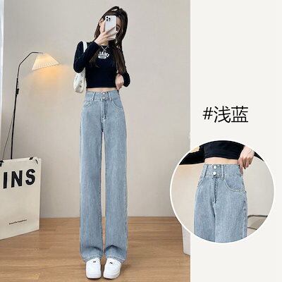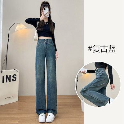 ガウチョパンツ アメリカ 着痩せ ストレートシリンダ ジーパン ハイウエスト やせて見える ゆとりがある ワイドパンツ レディース