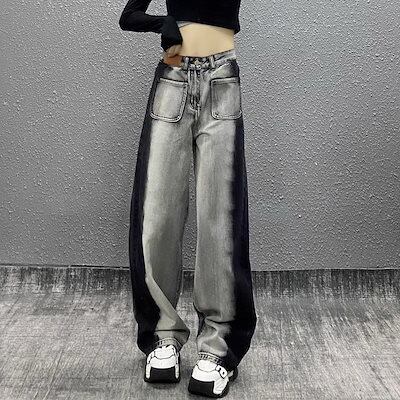 グレーブラックでデザイン感のあるハイウエストストレートレディース秋冬の新着痩せワイドレッグジーンズ