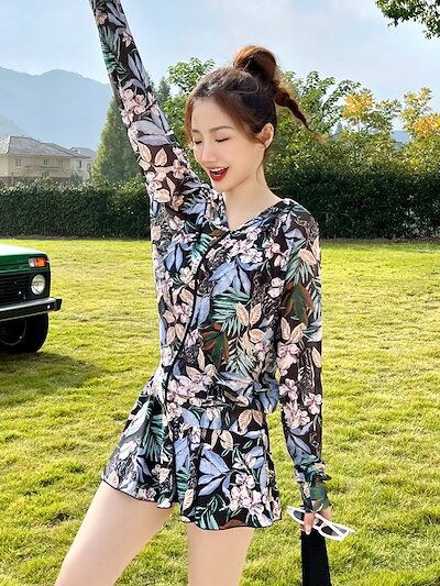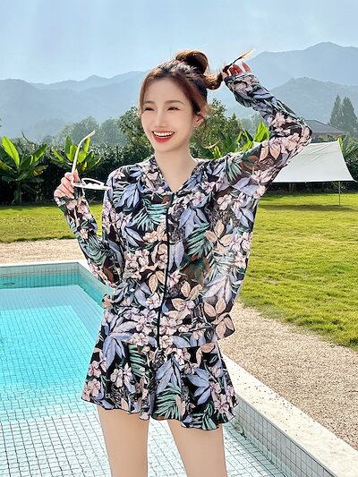 フラワー 長袖 日焼け防止 3点セット セパレート水着 温泉 水着 体型カバー 水着 レディース ラッシュガード ビキニ 水着 韓国