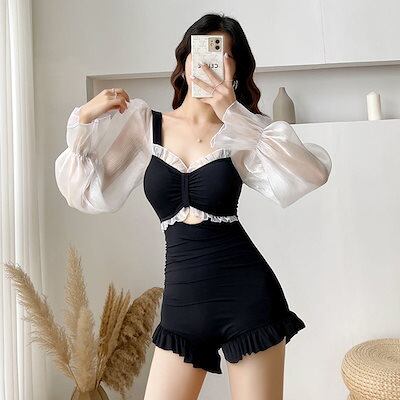 【新作追加】水着 レディース ワンピース水着 水着 体型カバー 2025新しい水着女性セクシーな長袖学生温泉水着