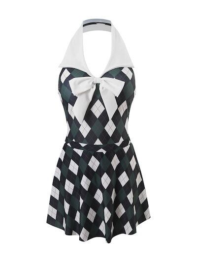 2025夏 水着 レディース 新型連体アメリカンレトロ学院ギャルクラシック菱格 韓国 可愛い 温泉 修学旅行 ラッシュガード 水着 体型カバー ワンピース ビキニ