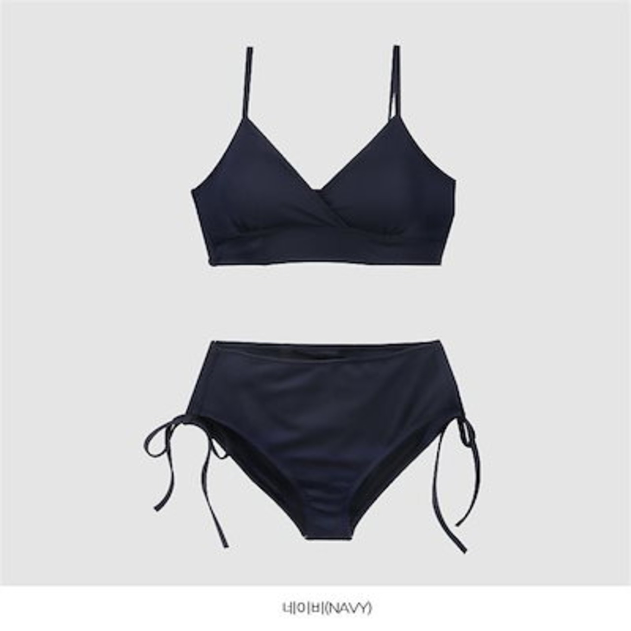2025 新作 韓国 セパレート 水着女性 無地 タイト ハイウエスト 薄手 ギャザリング トライアングル ビキニ
