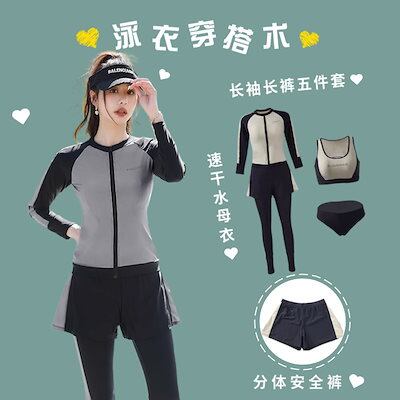 2025 人気 水着 レディース 長袖 水着 体型カバー 5点上下セット UVカット 紫外線対策 レギンス水着 競泳水着 20代 30代 40代 レディース