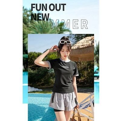 水着 2025 新作 フィットネス水着 レディース タンキニ 半袖 スポーツ サーフィン かわいい ビーチウェア 体型カバー 大きいサイズ ママ水着 20代 30代 40代 50代