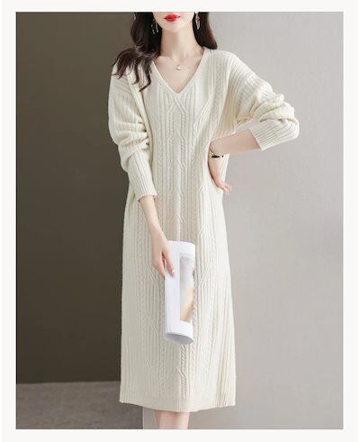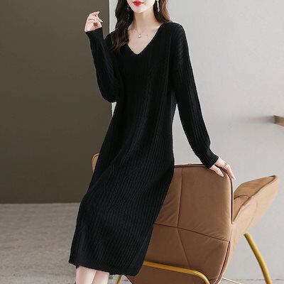 ワンピース 秋冬ワンピースレディースロングひざ毛スカート2024新作ニットボトムスカート