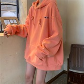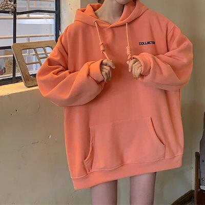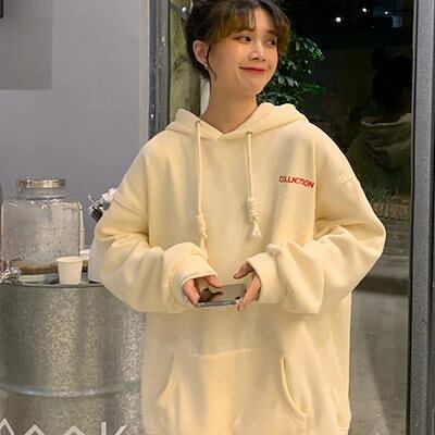 パーカー 中わた入り厚手セーター女性フード付きルーズミディアム丈ジャケット秋冬刺繍トップス