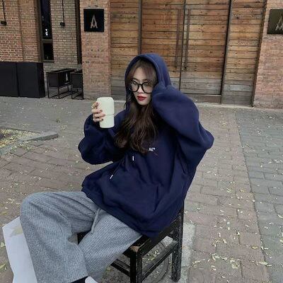 パーカー ルーズなフード付きセーターの女性のカジュアルな文字の秋と冬の新しい韓国語バージョンは中わた入りのトップスをプリント