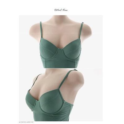 水着レディース 体型カバー 水着 ワンピース型 セパレート 三角パンツ水着 サロペット 小胸バンドゥ 水着 韓国風 大きいサイズ 可愛い スイムウェア ママ