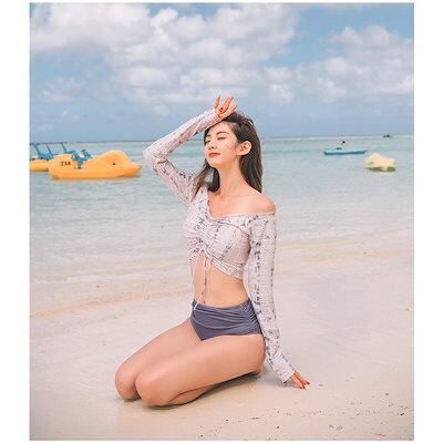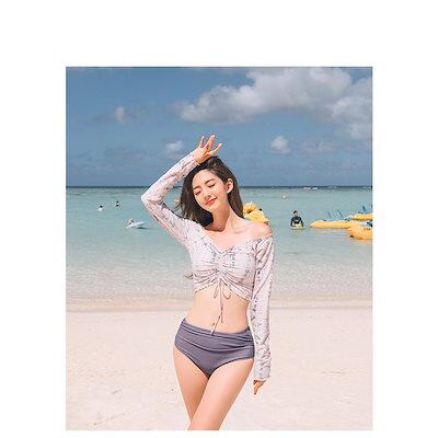 水着レディース 体型カバー 水着2点セット 花柄 ボートネック長袖 セパレート水着 三角パンツ 紫外線カット 水着 韓国風 40代 可愛い スイムウェア ママ3515