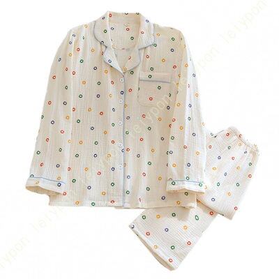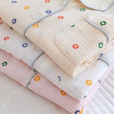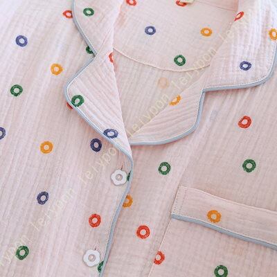 ルームウェア パジャマ レディース 二重ガーゼ 綿 長袖 長ズボン 春 夏 秋 冬ナイトウェア ダブルガーゼ ガーゼパジャマ 前開き 冷房対策 母の日 プレゼント