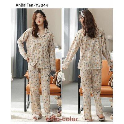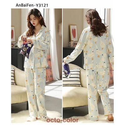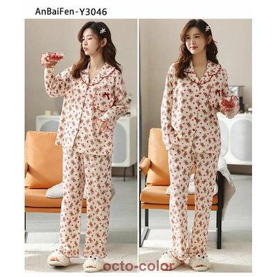 ルームウエア パジャマ レディース 綿 コットン 長袖 長ズボン 春 夏 秋 上下セット 部屋着 寝間着 通気性 前開き 冷え性対策 柔らかい 暖かい 肌触り