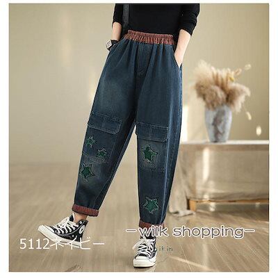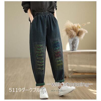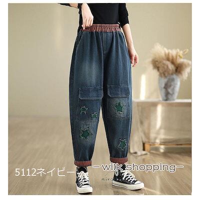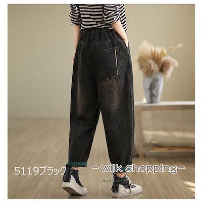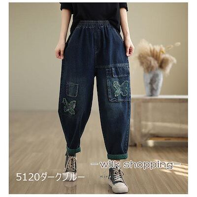 ジーンズ レディース デニムパンツ テーパードパンツ ワイドパンツ ロングパンツ ボトムス ズボン 春物 秋物 体型カバー 九分丈パンツ ウエストゴム ポケット
