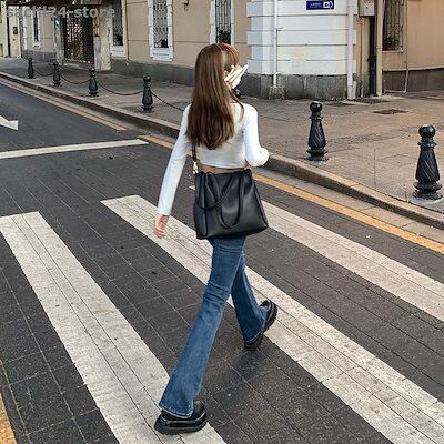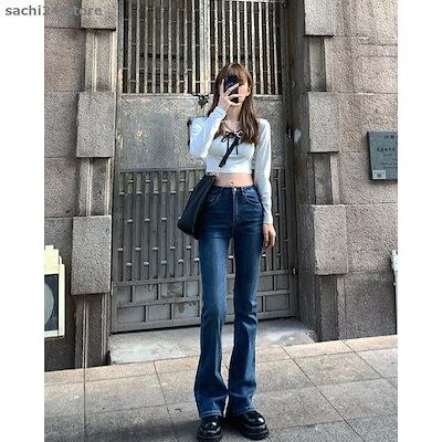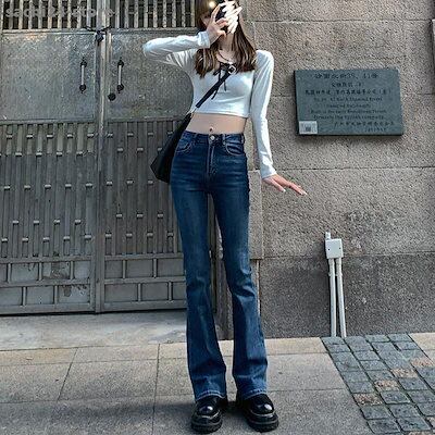 デニムパンツ レディース ブーツカット フレア ロング丈 ストレッチ ハイウェスト ファッション コーデ 春服 ボトムス お洒落 美脚メイク