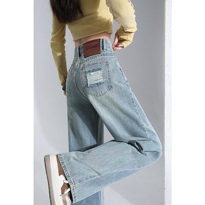 デニム ジーンズ レディース 春 秋 新作 ハイウエスト 秋 ゆったり 幅広 脚 ストレートパンツ