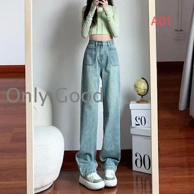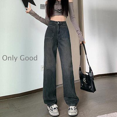 ジーンズ レディース デニムパンツ ストレート ジーパン ワイドパンツ ハイウエスト デニムズボン ロング丈 ゆったり 着痩せ 春夏 秋 オシャレ 20代30代40代