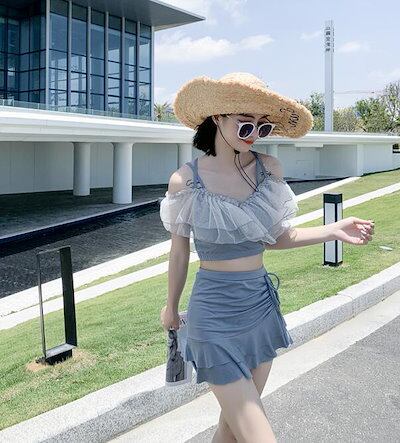 無料!ラッシュガード 水着 体型カバー ビキニ ヌーブラ ワンピース水着 2点セット可愛い ビキニ 水着 レース 体型カバー 水着 レディース 海フレアワンピース ふわふわ ワイヤー ファション