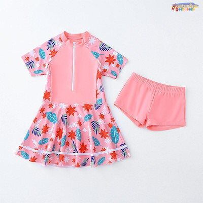 夏新作入荷 スクール水着 女子 水着 キッズ 女の子 2点セット パンツ ワンピース式 子供 紫外線防止柄物 女児 UVカット ジュニア 小学生 可愛い