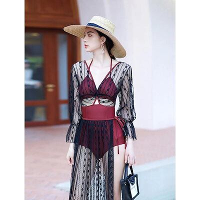 【SW.上品】 レースカバー 2点セット ワンピース水着 レディース 水着 温泉 体型カバー キレイ セクシー ビキ 水陸両用 ラッシュガード 体型カバー 日焼け止め メガ割