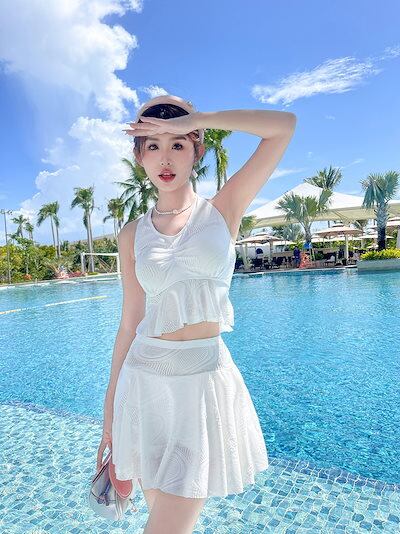 2点セット 水着 レディース 韓国 2025点首掛け少女水着 ノースリーブスリム水着 可愛い 温泉 修学旅行 ラッシュガード 水着 体型カバー ワンピース ビキニ