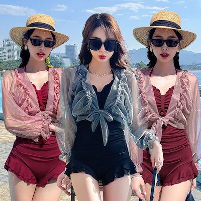 2024 夏 体型カバー 水着 レディース ワンピース セパレート 大きいサイズ 中学生 高校生 体型カバー 2点セット 上下セット 学生 少女 夏 リゾート