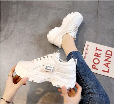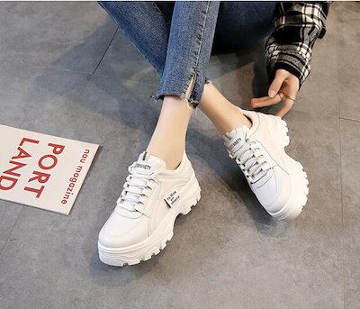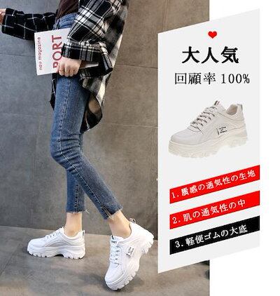 品質高 再入荷 韓国 美脚 厚底スニーカー カジュアル 白 ベージュ ヒール高さ55cm