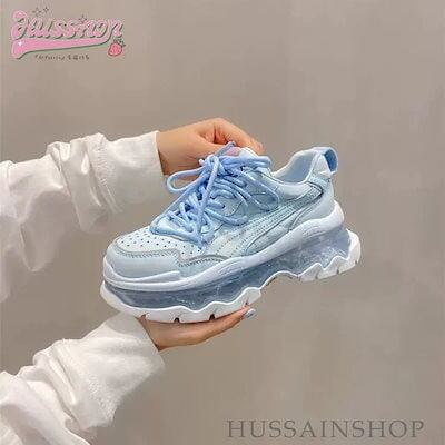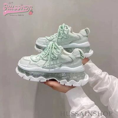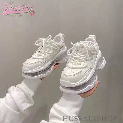 可愛い ゆったり ボリュームソール スニーカー 足首ほっそり 厚底 シューズ 脚長効果 美脚見え 学生 通学 シンプル カジュアル 涼しげ スタイルアップ kawaii 靴 白