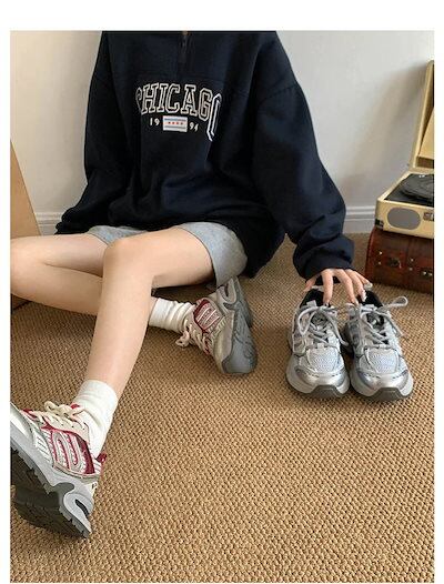 24 可愛い ゆったり ボリュームソール スニーカー 足首ほっそり 厚底 シューズ 脚長効果 美脚見え 学生 通学 シンプル カジュアル 涼しげ スタイルアップ kawaii 靴 白