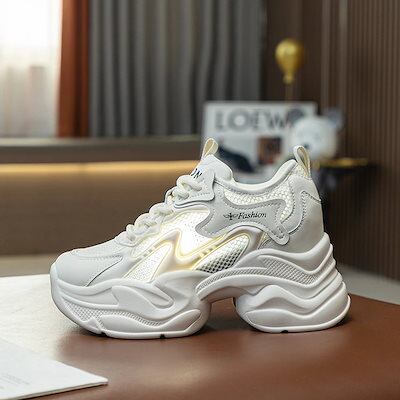 厚底 スニーカー 2024春 靴新型内高カジュアル白靴単斜面とマドレーヌ厚底ネット靴 美脚疲れない軽量靴 スニーカー レディース 韓国