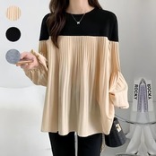 Tシャツ 韓国 カットソー シフォンブラウス 【上品】春 夏 シフォン シャツ プリーツ ランタン袖 切り替え ラウンドネック 長袖 ブラウス ゆったり 凉感 体型カバー 気質 着やせ