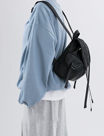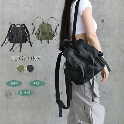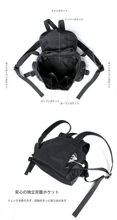 【男女兼用】軽量 ミニリュックサック おしゃれ ナイロン製 盗難防止 小さめ 巾着付き 旅行・通勤用 バックパック かばん 丈夫で長持ち ブラック